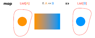 This means that a function passed to map doesn't have to be applied immediately. The list implementation can hook it up and save it for later. This kind of temporal distortion, of "you told me what to do, and I'll do it when I'm good and ready" is part of the power and mystery of functional programming. It gets more magical in places other than list. Consider Future.