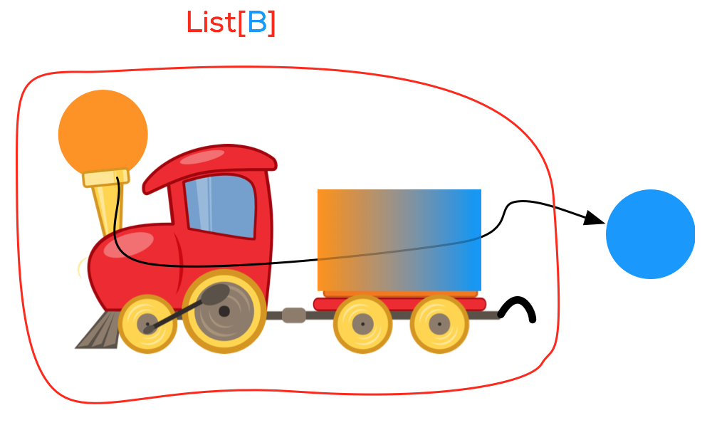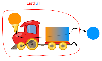 It's kind of like, the List holds its value in a train car, and the train car always has a hook to which another train car can attach.