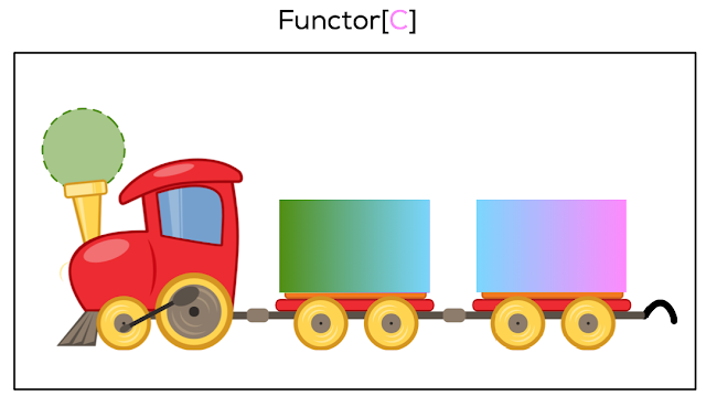 If this makes sense, if you can see the commonality and usefulness of hooking up new functions that will transform a value before we can see it, then it's time to give a name to it: Functor. A functor is any type with a map method that works like this. Whatever sort of value it has for you, or may have later, you can hook up the train cars to transform that value. And what you get back from map is always another of the same kind of Functor, now holding a different type of value. Add all the cars you like, it's still a train.