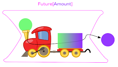 Now you have a Future waiting for an Amount. After the database-accessing thread finishes its work, the Future will have a value for you, and when you get it out, it passes through all the train cars (all the mapped functions).