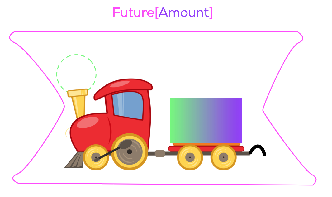 Future represents a value that we might not have yet. Maybe it's being fetched by a process on another thread. It's a container like List, except that it might not have that original value yet. Future has a map method just like list, and we can hook up functions like train cars in the same way.